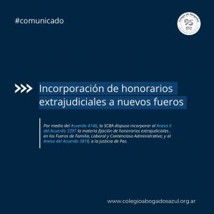 Incorporación de honorarios extrajudiciales a nuevos fuerosPor medio del Acuerdo Nº 4146, la SCBA dispuso incorporar al Anexo II del Acuerdo 3397 la materia Fijación de honorarios extrajudiciales, en los Fueros de Familia, Laboral y Contencioso Administrativo; y al Anexo del Acuerdo 3878, a la Justicia de Paz. Las materias que se incorporan son de aplicación a los procesos judiciales que se inicien a partir de la publicación de la presente disposición. LEER MÁS |