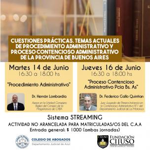 Cuestiones Prácticas: Temas actuales de Procedimiento Administrativo y Contencioso AdministrativoEl Dr. Hernán Lombardía y el Dr. Federico Gallo Quintian, Juez Juzgado de Primera Instancia en lo Contencioso Administrativo N°1 del Departamento Judicial de La Matanza disertarán el martes 14 y jueves 16 de junio de 16:30 a 18 hs vía Sistema Streaming. LEER MÁS |