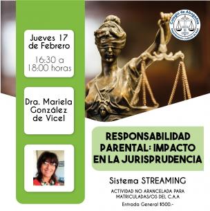 Capacitación: “Responsabilidad Parental: impacto en la jurisprudencia”La Dra. Mariela González de Vicel disertará sobre esta temática el jueves 17/02 de 16:30 a 18 horas, vía streaming. La actividad es no arancelada para matriculadas y matriculados LEER MÁS |