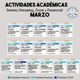 Agenda de actividades académicas de marzoCompartimos el detalle de las capacitaciones que se brindarán en forma presencial, vía streaming y zoom, durante este mes. LEER MÁS |