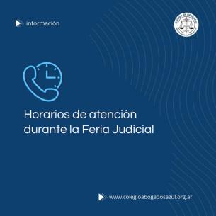 Horario de atención durante la Feria JudicialInformamos que la sede y subsedes del Colegio de Abogados Departamental, estarán a disposición de matriculadas y matriculados de lunes a viernes de 9 a 14 hs. LEER MÁS |