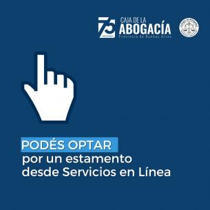 Solicitud de estamento desde servicios en línea de la Caja de la AbogacíaHasta el 31 de mayo del 2023, si su obligación 2022 se encuentra al 100% (es decir que no ha realizado hasta ahora ninguna opción de estamento necesario ni se adhirió al régimen parcial -RGP-) puede elegir un porcentaje de aportes menor (38%, 50% o 75%) desde servicios en línea. LEER MÁS |
