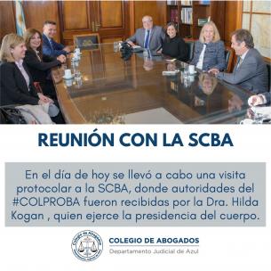 Reunión con la SCBAEn el día de hoy se llevó a cabo una visita protocolar a la SCBA, donde autoridades del COLPROBA fueron recibidas por la Dra. Hilda Kogan, quien ejerce la presidencia del cuerpo. LEER MÁS |
