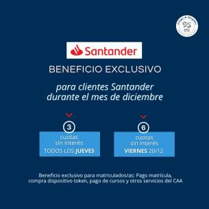 Promociones bancarias durante el mes de DiciembreMatriculados y matriculadas del Colegio podrán acceder a promociones bancarias para abonar servicios con las tarjetas de Santander, Banco Provincia o con la billetera virtual Cuenta DNI. LEER MÁS |