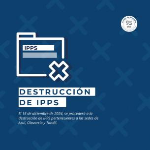Información importante sobre destrucción de IPPsEl 16 de diciembre se llevará a cabo la destruccion de IPPs correspondientes a las sedes de Olavarría, Azul y Tandil. A continuación se detallan las investigaciones penales preparatorias a destruir por sede. LEER MÁS |