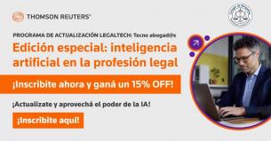 Nuevo Programa de Actualización Legal Tech sobre IA en la profesión legalEl Colegio de Abogados Departamental en articulación con Thomson Reuters ofrece importantes descuentos a matriculados/as del C.A.A. que deseen cursar el programa de actualización que abordará las IA y su irrupción en la digitalización de los procesos legales, con el objetivo de que quienes participen puedan profundizar sus conocimientos en tecnología. LEER MÁS |