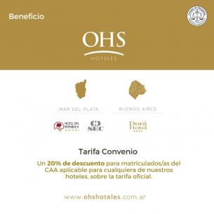 Nuevo beneficio para matriculados/as en OHS HotelesEl Colegio de Abogados Departamental celebró un nuevo convenio con la cadena hotelera OHS que incluye descuentos en alojamiento en los hoteles SEC, Hotel Spa República y Dorá Hotel, ubicados en las ciudades de Mar del Plata y Buenos Aires. LEER MÁS |