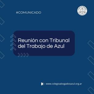 Comunicado: Reunión con el Tribunal de Trabajo de AzulEl día jueves 7 de diciembre, la Presidenta del Colegio de Abogados del Departamento Judicial de Azul, Dra. María Fernanda Giménez, acompañada de los Dres. Bianco, Prat, Grandicelli y Olivera, se reunieron con el Dr. Marcelo Paternico, miembro del Tribunal del Trabajo de Azul. LEER MÁS |