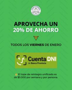 Obtené exclusivos pagando con Cuenta DNITodos los viernes de enero van a poder obtener el beneficio de 20% de ahorro en el abono de matrícula y/o la compra de token utilizando la billetera electrónica de Banco Provincia. En esta oportunidad, el tope de reintegro unificado es de $5.000 por semana y por persona. LEER MÁS |