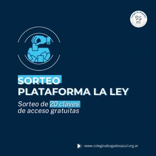Plataforma La Ley: Sorteo de 20 claves de acceso gratuitasEn el marco del convenio que tiene el Colegio con la editorial jurídica La Ley, se lanzó un nuevo beneficio que consta del sorteo de 20 claves de acceso gratuitas al contenido de la plataforma. LEER MÁS |