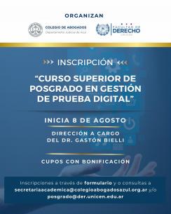 Se abre la inscripción al curso de posgrado sobre gestión de prueba digitalHasta el 4 de agosto se podrán inscribir a la capacitación que contará con 10 módulos, se extenderá durante un año y comenzará el próximo 8 de agosto. LEER MÁS |