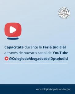 Capacitate durante la Feria Judicial de invierno a través de nuestro canal YouTubeEn los próximos días, el Colegio habilitará en su canal capacitaciones para que puedas realizar en el transcurso de la Feria. LEER MÁS |
