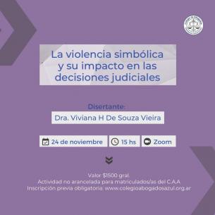 Charla “La violencia simbólica y su impacto en las decisiones judiciales”El Instituto de Violencia Familiar y de Género del C.A.A. organizó la charla “La violencia simbólica y su impacto en las decisiones judiciales" que se transmitirá mediante el sistema de videoconferencias Zoom y se realizará en 24 de noviembre a las 15 hs. LEER MÁS |