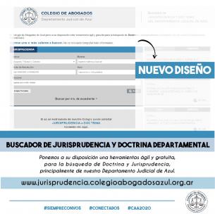Nuevo servicio del CAA: Buscador de Jurisprudencia y Doctrina DepartamentalEl Colegio de Abogados del Departamento Judicial de Azul pone a disposición de sus matriculados y matriculadas un nuevo y mejorado buscador digital, una herramienta que permitirá acceder, de manera ágil y gratuita, a la consulta de Doctrina y Jurisprudencia, ampliando la base de casos de contenido jurídico. LEER MÁS |