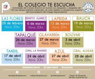 Comienza un nuevo Ciclo “El Colegio te Escucha”Esta propuesta que comenzó en el 2018, ha generado un verdadero espacio abierto de participación para matriculadas y matriculados, que toman contacto directo con autoridades del Consejo Directivo; en los 11 Partidos del Departamento Judicial. LEER MÁS |