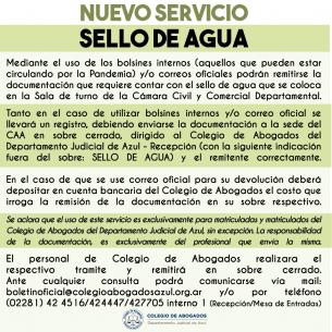Nuevo Servicio: Sello de AguaMediante el uso de los bolsines internos (aquellos que pueden estar circulando por la Pandemia) y/o correos oficiales podrán remitirse la documentación que requiere contar con el sello de agua que se coloca en la Sala de turno de la Cámara Civil y Comercial Departamental. LEER MÁS |