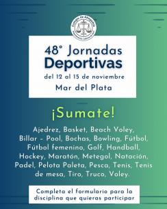 Se acerca una nueva edición de las Jornadas Deportivas en Mar del PlataDel 12 al 15 de noviembre, la ciudad de Mar del Plata será sede de las 48° Jornadas Deportivas Interdepartamentales de la Abogacía, un clásico encuentro que reúne a colegas de toda la provincia en torno al deporte y la camaradería. LEER MÁS |