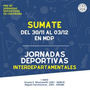 Participá de las 45° Jornadas Deportivas de COLPROBAÚltima semana para reservar alojamiento con valores promocionales. Sumate a nuestro equipo para representar al C.A.A del 30/11/2022 al 03/12/2022 en Mar del Plata. Confirmá tu participación completando el formulario online. LEER MÁS |