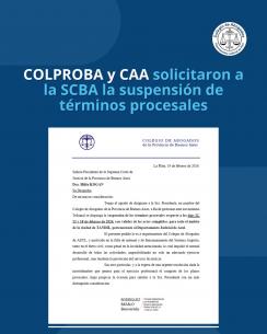 COLPROBA solicitó a la SCBA la suspensión de términos procesales este lunes 23 de febreroLa solicitud fue motivada por un pedido del C.A.A. donde se detallan problemas de conectividad y de funcionamiento del Sistema Augusta en la ciudad de Tandil, tanto en el fuero civil como penal, lo cual afectó directamente a la prestación del servicio de justicia. LEER MÁS |