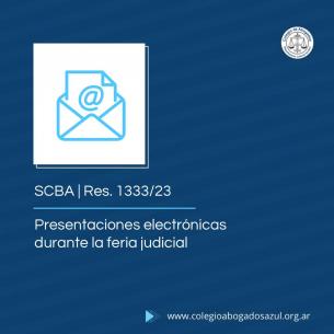 Presentaciones electrónicas durante la feria judicialA través de la Resolución SC Nº 1333/23, la Suprema Corte de Justicia estableció que cuando el número de presentaciones electrónicas no urgentes recibidas durante las ferias judiciales de invierno y verano superen las 80.000 (ochenta mil) y 120.000 (ciento veinte mil) -respectivamente-, operará de manera automática el diferimiento para el cómputo del plazo establecido para el proveimiento o dictado de resoluciones en un (1) día. LEER MÁS |