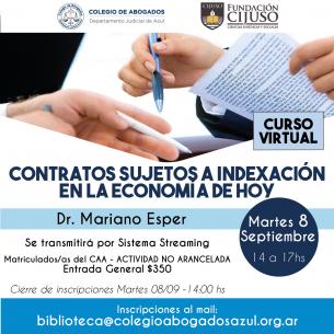 El Dr. Mariano Esper abordará esta temática el martes 8/09 de 15 a 17hs, vía streaming. Se entregan certificados. Podrás inscribirte hasta las 14hs de ese día, por mail: biblioteca@colegioabogadosazul.org.ar