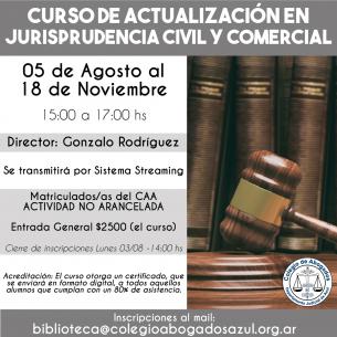 Continúa el curso de actualización en Jurisprudencia Civil y Comercial