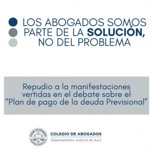 Los abogados somos parte de la solución, no del problema.Repudio a la manifestaciones vertidas en el debate sobre el «Plan de pago de la deuda Previsional» LEER MÁS |