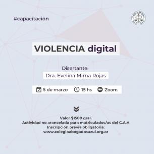 Nueva capacitación sobre violencia digitalEl próximo martes 5 de marzo se realizará en modalidad virtual una capacitación sobre violencia digital. Estará a cargo de la Dra. Evelina Mirna Rojas y se transmitirá vía Zoom desde las 15 hs. LEER MÁS |