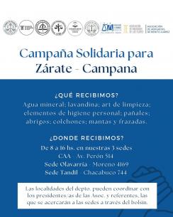 El Colegio impulsó una campaña solidaria para Zárate - CampanaEstaremos recibiendo agua mineral, lavandina, artículos de limpieza, elementos de higiene personal, pañales, abrigos, colchones, mantas y frazadas. LEER MÁS |