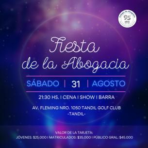 Se realizará la tradicional Fiesta de la Abogacía en TandilEl sábado 31 de agosto a las 21.30 hs en el Club de Golf de Tandil nos encontramos para la tradicional Fiesta de la Abogacía. LEER MÁS |