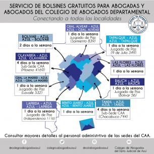 Servicio de Bolsines gratuito para matriculadas y matriculados del C.A.AConecta a las 11 localidades del Departamento Judicial, disponible para envío de documentación desde la sede del Colegio de Abogados del Departamento Judicial, de Azul hacia Olavarría, Tandil, Bolívar, Laprida, General La Madrid, General Alvear, Tapalqué, Rauch, Benito Juárez, Las Flores y viceversa, permitiendo conectar a todas las localidades a través de este correo interno. LEER MÁS |