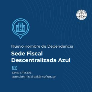 Cambio de denominación de la Fiscalía Federal de AzulEn el marco de la implementación del nuevo Código Procesal Penal Federal en Azul, la hasta entonces Fiscalia Federal de Azul cambió su denominacion al igual que el mail para recibir consultas, denuncias, etc. LEER MÁS |