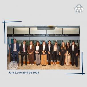 Un nuevo grupo de profesionales se sumó al Colegio en el Acto de Jura del pasado martesEl Colegio de Abogados Departamental fue sede de una nueva ceremonia de jura, en la que un grupo de nuevos profesionales del derecho se incorporó formalmente a la institución. En un cálido clima de bienvenida, la Presidenta del Colegio, Dra. Maria Fernanda Gimenez, y la Secretaria del Consejo Directivo, Dra. Romina Maineri, se dirigieron a los flamantes matriculados/as con mensajes que destacaron el valor de la participación activa y el compromiso profesional. LEER MÁS |
