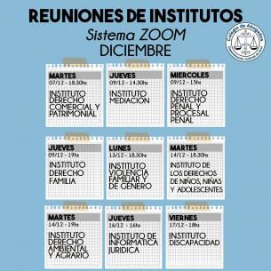 Institutos: Agenda de reuniones de diciembreInformamos días y horarios de las reuniones que se llevarán a cabo utilizando el Sistema Zoom. LEER MÁS |