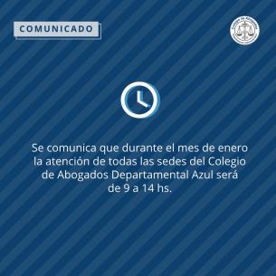 Horario de atención durante la Feria JudicialInformamos que la sede y subsedes del Colegio de Abogados Departamental, estarán a disposición de matriculadas y matriculados de lunes a viernes de 9 a 14 hs LEER MÁS |