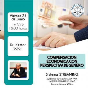 Charla: Compensación económica con perspectiva de géneroEl Dr. Néstor Solari disertará sobre esta temática el viernes 24/06 de 16.30 a 18hs vía Sistema Streaming. Esta capacitación es no arancelada para matriculados y matriculadas del C.A.A. Podés inscribirte completando el formulario online. LEER MÁS |