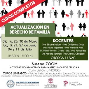 Avanza el curso de Posgrado: “Actualización en Derecho de Familia”Con un destacado cuerpo docente, la tercera clase se dictará el lunes 23 de mayo de 16.30 a 18hs, vía sistema Zoom. LEER MÁS |