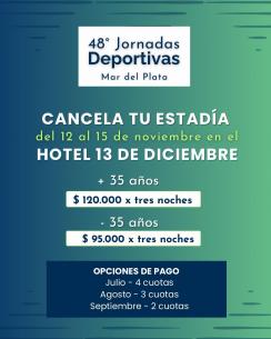 Jornadas Deportivas 2025: Alojate con la delegación del Colegio en el Hotel 13 de diciembreEl Colegio de Abogados Departamental obtuvo precios diferenciados para matriculados/as que deseen alojarse en Mar del Plata con la delegación deportiva durante las Olimpiadas. LEER MÁS |