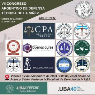 Se realizará el VII Congreso Argentino de Defensa Técnica de la NiñezEl encuentro tendrá lugar el viernes 17 de noviembre de 2023 a las 9 hs en el Aula Magna y Salón Verde de la Facultad de Derecho de la Universidad de Buenos Aires. LEER MÁS |