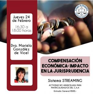 Tendrá lugar la charla “Compensación Económica: impacto en la jurisprudencia”Organizada por el Colegio de Abogados Departamental Azul, se desarrollará el jueves 24 de febrero, de 16:30 a 18 horas, vía streaming y estará a cargo de la Dra. Mariela González de Vicel. LEER MÁS |