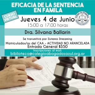 La Dra. Silvana Ballarín, destacada investigadora y especialista en la temática, brindará esta capacitación el jueves 4/06 de 15 a 17hs, vía streaming. Se entregarán certificados de asistencia. Inscripciones: biblioteca@colegioabogadosazul.org.ar