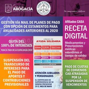 Informamos a nuestras matriculadas y matriculados, las acciones y medidas informadas por los Directores Titulares Departamentales de la Caja de la Abogacía.