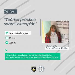 Taller Teórico-práctico sobre Usucapión a cargo de la Dra. PollioEl Colegio de Abogados Departamental junto con la Fundación Cijuso han organizado un Taller Teórico-práctico sobre Usucapión que se realizará el 8 de agosto a las 15 hs. Se transmitirá a través del sistema de videoconferencias Zoom. LEER MÁS |